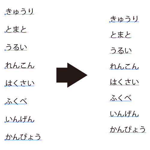 例えばこんな状態になったデータを右のように1つのテキストオブジェクトにしたい…ということ、ありませんか?